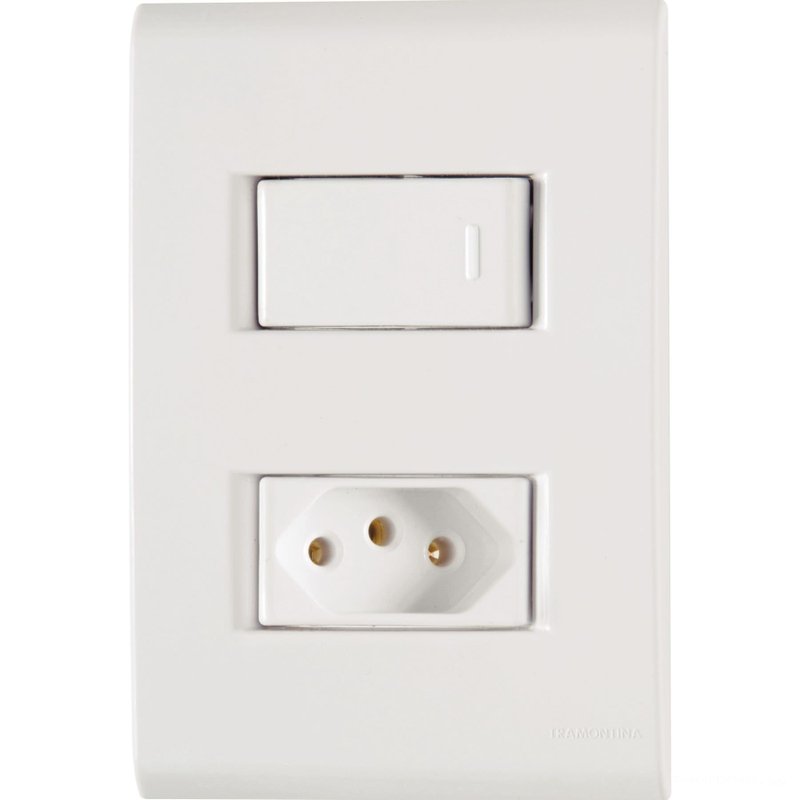 Com interruptor simples e tomada 2P+T, permite controlar a iluminação e conectar equipamentos com facilidade. Seu acabamento em branco proporciona visual clean e moderno, garantindo durabilidade e fácil instalação. Compatível com a linha Liz da Tramontina.